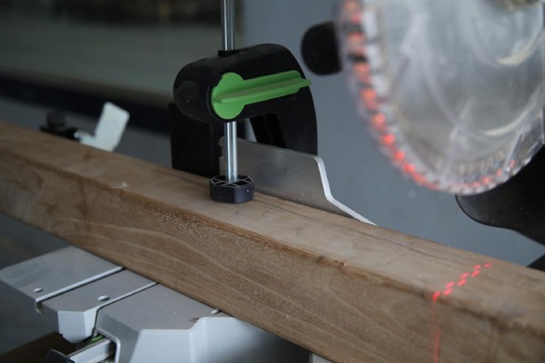 这一款设备就是费斯托木工设备中的明星产品——KS120切割锯。它的下锯方式是由手持把手向下方切割,切割的角度以及行程都可以根据需求随意改变。